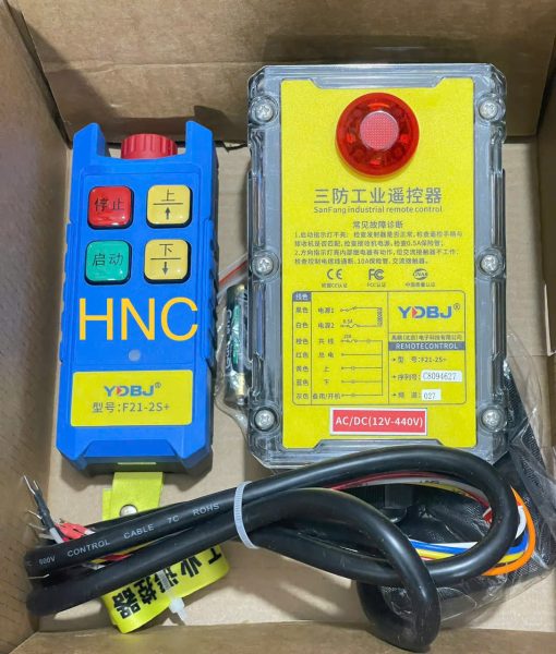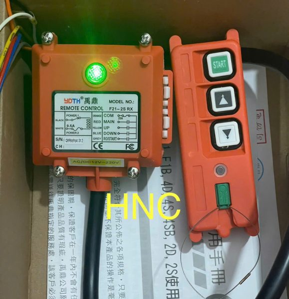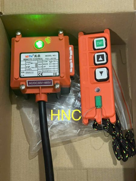 – Gồm: 1 Thu + 1 phát (Tay phát loại 4 nút gồm STOP/ START/ LÊN/ XUỐNG + và có nút Dừng khẩn cấp ở trên đầu tay bấm)
